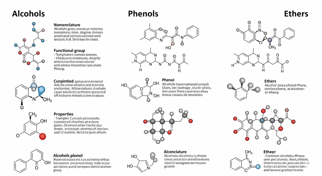 এই অধ্যায়ে অ্যালকোহল, ফিনল এবং ইথারের মৌলিক গঠন, প্রস্তুতি, ধর্ম এবং ব্যবহার নিয়ে বিস্তারিত আলোচনা করা হয়েছে। এই যৌগগুলি জৈব রসায়নের অত্যন্ত গুরুত্বপূর্ণ অংশ এবং বিভিন্ন শিল্পক্ষেত্রে ব্যাপকভাবে ব্যবহৃত হয়।