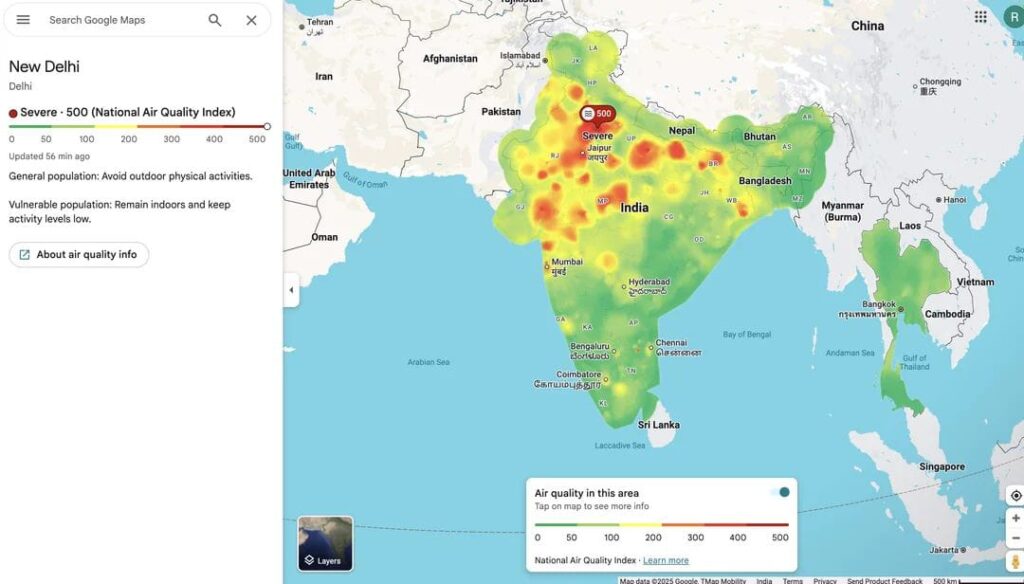 গুগল ম্যাপের এই তথ্য অনুযায়ী, উত্তর ভারতের পরিস্থিতি সবচেয়ে উদ্বেগজনক।