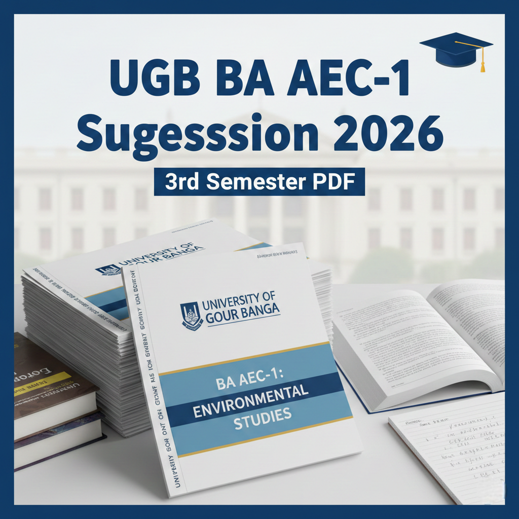 University of Gour Banga-এর অধীনে যারা B.A 3rd Semester পরীক্ষা দেবে, তাদের জন্য AEC-1 (Ability Enhancement Course) অত্যন্ত গুরুত্বপূর্ণ একটি পেপার। অনেক ছাত্রছাত্রী পরীক্ষার আগে সঠিক প্রস্তুতির জন্য নির্ভরযোগ্য suggestion খুঁজে থাকে। সেই প্রয়োজন মাথায় রেখেই এই পোস্টটি তৈরি করা হয়েছে।